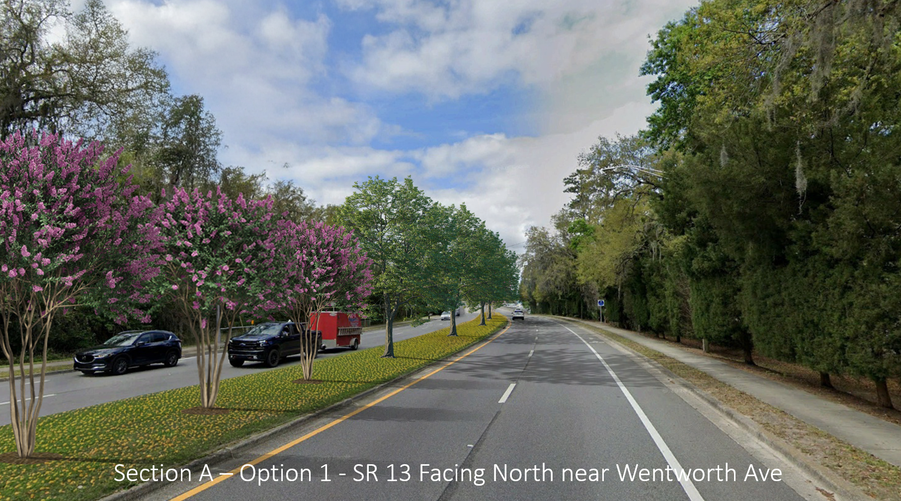 The Florida Department of Transportation District 2 Landscape Architect’s Office has developed preliminary conceptual designs for new median plantings along State Road 13.